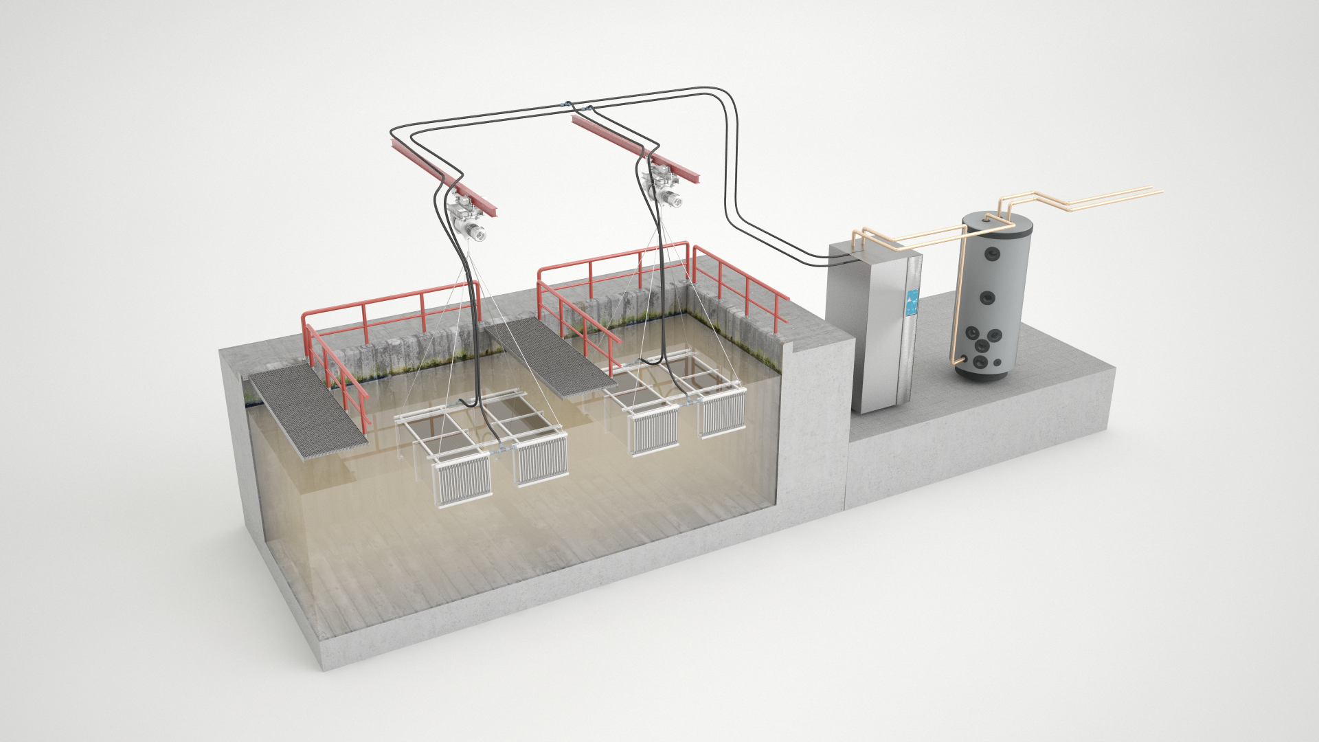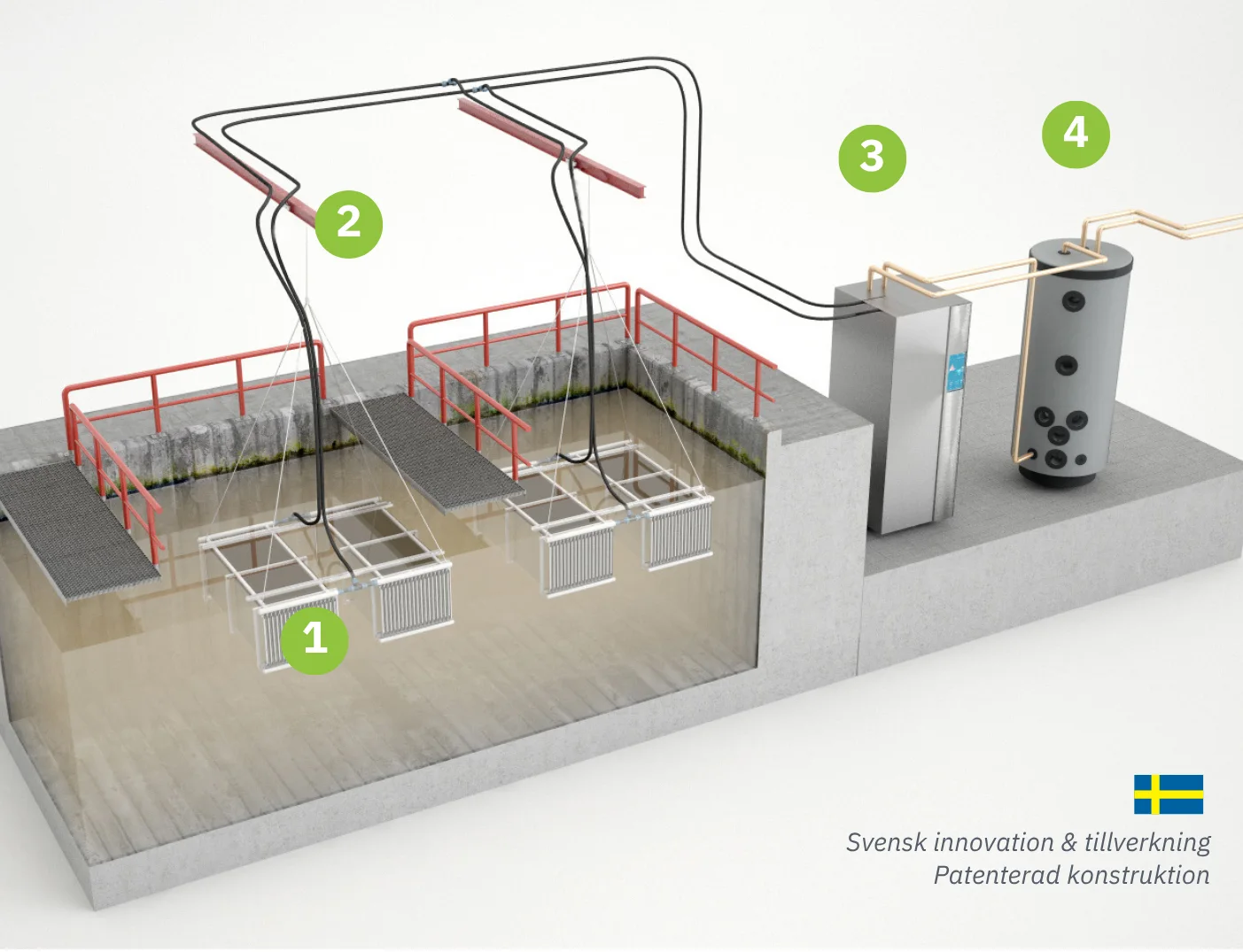 Evertherm är ett robust och underhållsfritt system som återvinner värme ur avloppsvattnet. Systemet består av kollektorer som sänks ned i befintliga bassänger samt en värmepump som samverkar för att optimera energiuttaget.